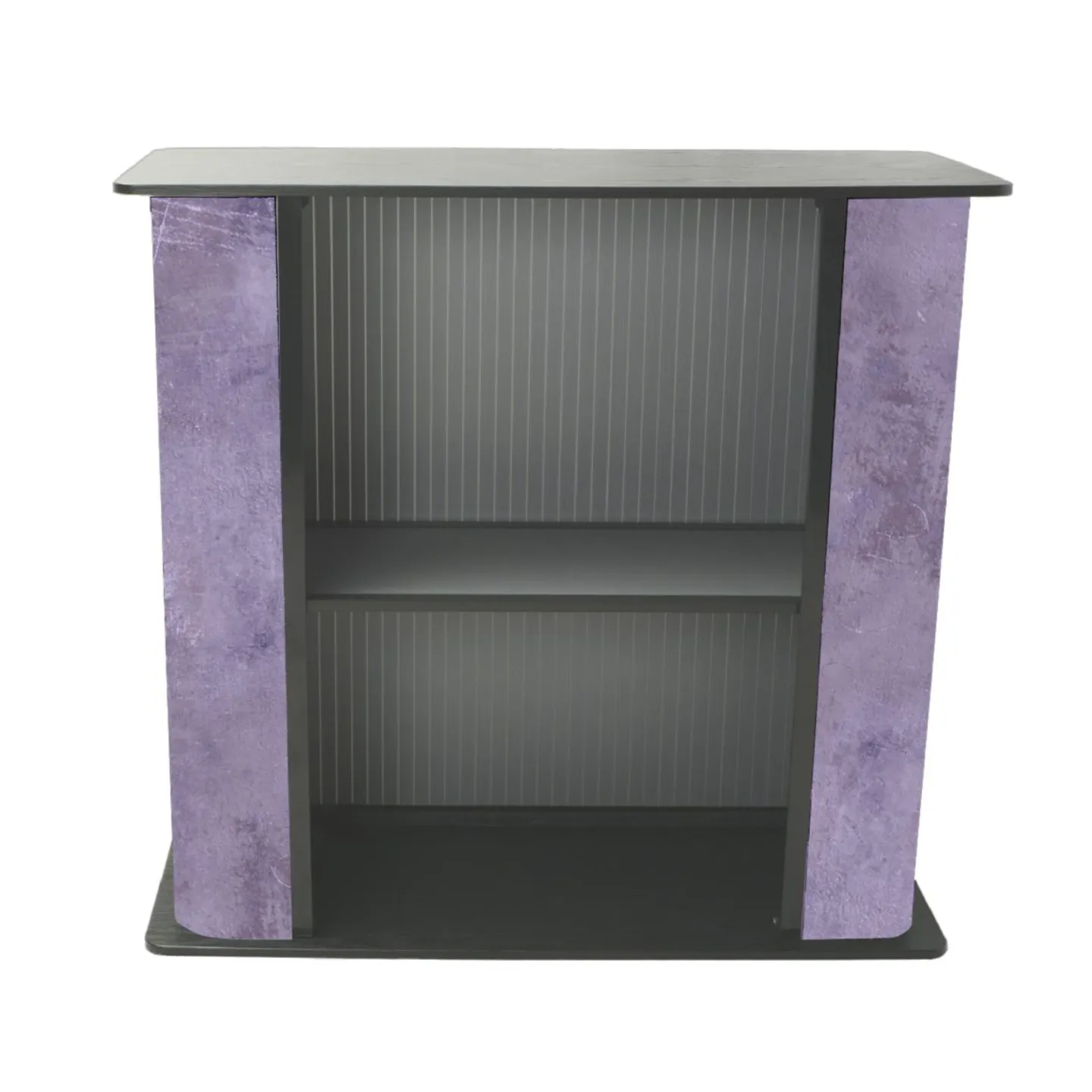 Hranatý prezentačný pult kombinuje štýlovosť a funkčnosť s úložným priestorom, ktorý ideálne využijete na stánkoch počas výstav a vďaka ľahkému transportu aj na rôznych roadshow. Zostavenie aj demontáž sa vykonáva bez použitia náradia, grafika sa ku konštrukcii upevňuje pomocou suchého zipsu. Vrch pultu je obojstranný, kde jedna strana je čierna, zatiaľ čo druhá s imitáciou dreva. Na prenášanie a skladovanie promo pultu slúžia dve tašky, ktoré sú súčasťou balenia (jedna na konštrukciu, druhá na tlačový obal).